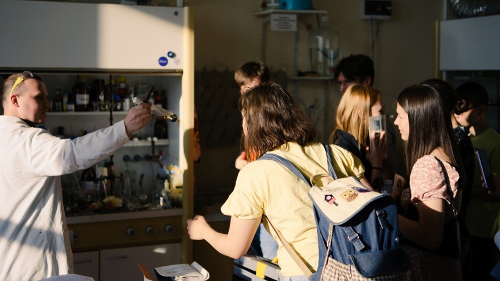 Школьники узнали об особенностях измерения магнитных и термических свойств материалов, познакомились с необычными и важными для человека органическими соединениями, получили представление о разнообразии технологий, применяемых для синтеза и анализа наноматериалов. Экскурсоводами выступали молодые ученые ИОНХ РАН, научные сотрудники лаборатории синтеза функциональных материалов и переработки минерального сырья, лаборатории термического анализа и калориметрии, лаборатории химии координационных полиядерных соединений, лаборатории магнитных материалов, лаборатории химии легких элементов и кластеров, лаборатории пероксидных соединений и материалов на их основе, лаборатории химии обменных кластеров, которые доступным языком объясняли школьникам различные аспекты научной деятельности, ответили на вопросы школьников.